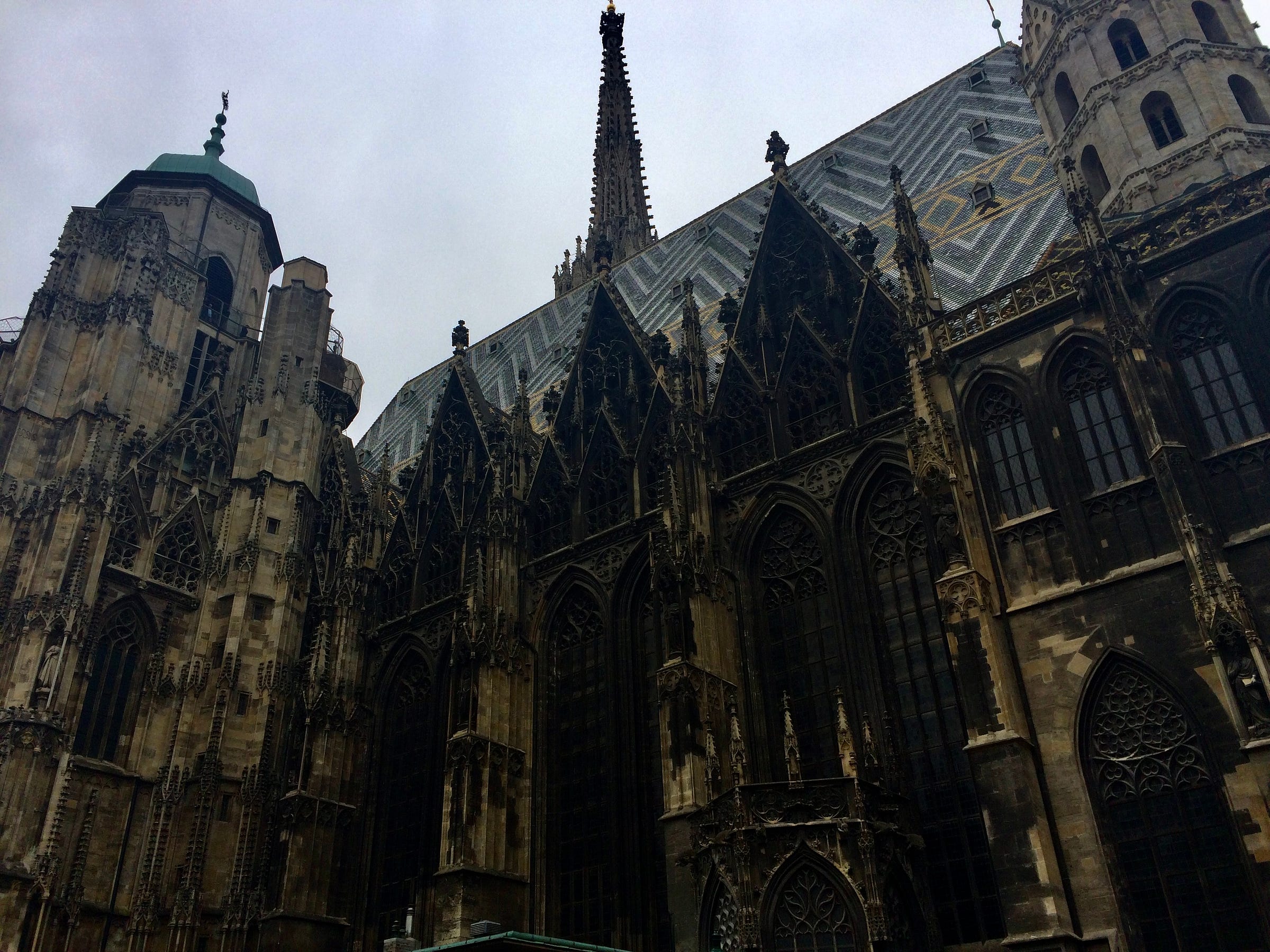 Read about the gothic cathedral. If you go to Vienna, enjoy views of St. Stephen’s roof from the Do & Co bar across the platz.