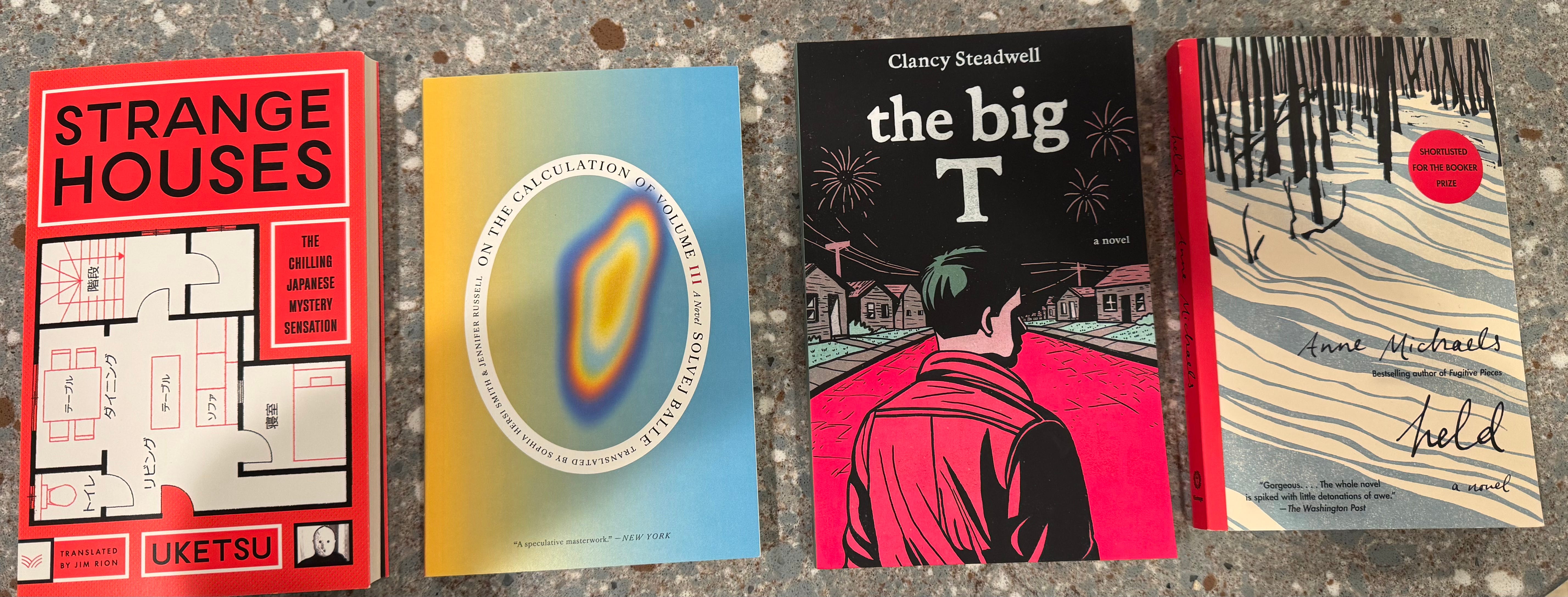 I have a wonderful TBR pile, partly from books I picked up here. I’m excited to read Clancy Steadwell’s The Big T in full, a previously serialized novel which I started reading on Substack and ordered to greet me in Boston, and Anne Michael’s Held, a recommendation from Kate Jones. At an annual visit to one of my favorite bookshops — the Concord Bookshop (Massachusetts) — it was Uketsu’s Strange Houses and the third installment of Solvej Balle’s brilliant Groundhog-Day-esque On the Calculation of Volume that piqued my interest. I also picked up Zadie Smith’s latest collection of essays as a gift to my husband…let’s see who gets to it first.