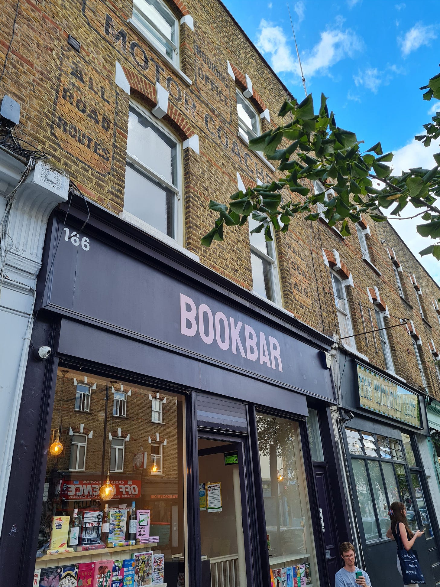 Big pink capital letters announce the BookBar’s presence on Finsbury Park’s Blackstock Road, helping it stand out from the cafes, the charity shops, the odd off-licence. Inside the shelves are packed with books, but there’s also plenty of room for a table for people to chat about their latest read and enjoy their drink, alcoholic or otherwise.