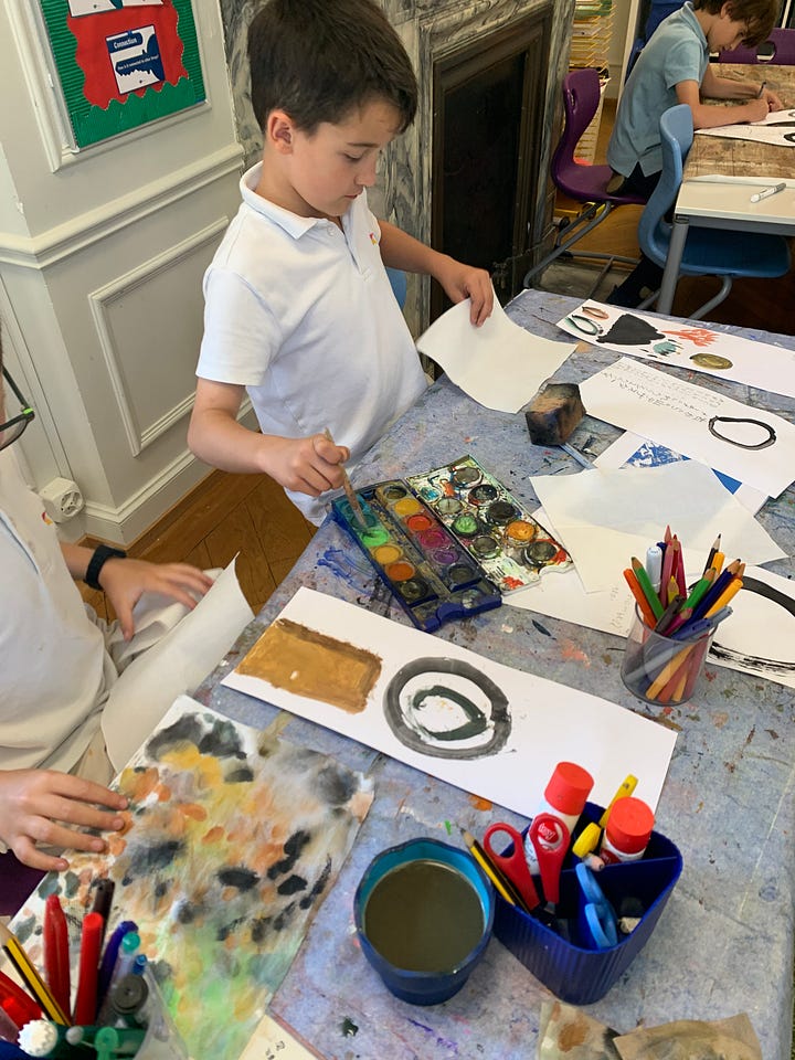 In my ‘surprise’ year of teaching primary school art, I developed a unit with Grade 2 students around Japanese art, ending with the painting of a scroll that included an Ensō, haiku (written by the child), and some element of landscape painting. We studied and practiced each part separately before making the whole. For landscape painting, we observed and copied Japanese works, especially of Mount Fuji. Then, in the form of pastiche, we looked at Swiss iconic landscapes, bringing a foreign artistic practice to their local experience.
